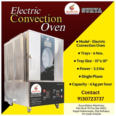 "Surya Bakery Machinery" Kolhapur, Maharashtra, India. is a leading and well recognized name as Manufacturers, Suppliers, exporters and traders of Bakery Oven, Bakery Machinery, Roatry Rack Oven, Electric Bakery Oven, Spiral Mixer,Four Speed Cake Mixer,Cake Mixer,Bread Slicer, Single Speed Cake Mixer, Dough Sheteer, Hot Case